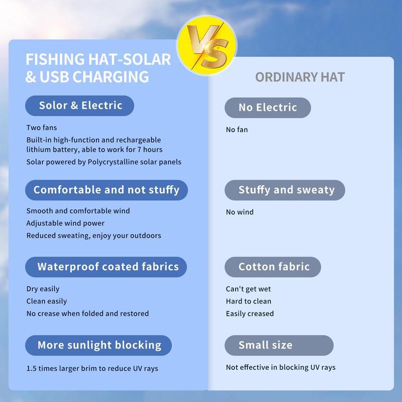 Whether you are fishing, camping, hiking, or engaging in any other outdoor activities, this Solar Fan Hat is a must-have accessory.